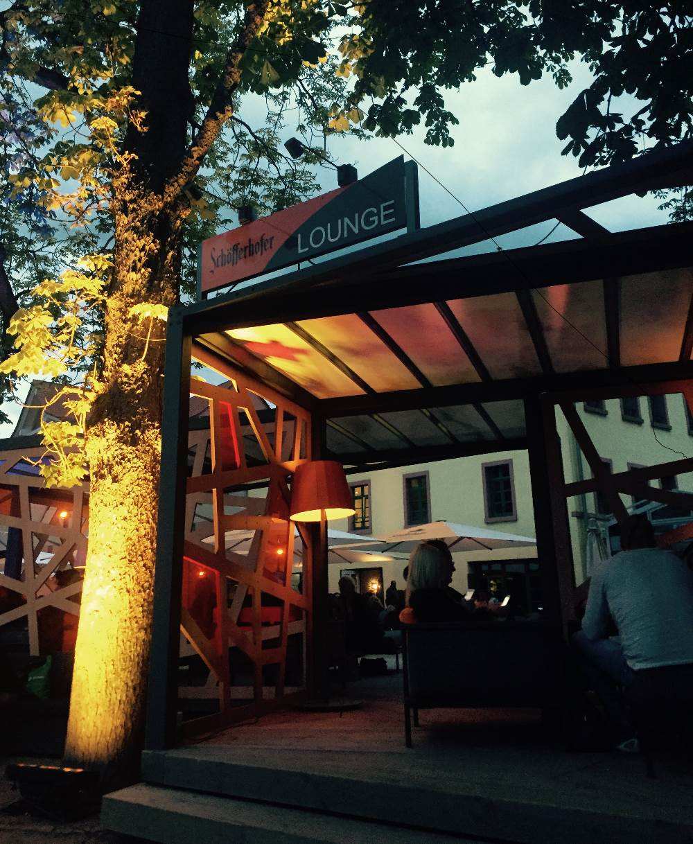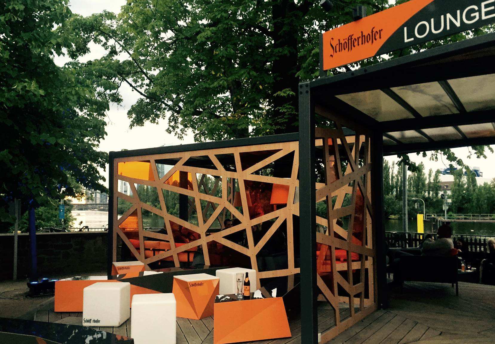 Man fläzt in Lounge Sesseln oder auf einem der coolen Sofas, mit der Clique, den Arbeitskollegen und Freunden und schaut in Richtung Mainhattan. Das neue EZB Gebäude glitzert in der untergehenden Sonne. Das gefällt mir! „Es prickelt so schön in meinem Bauchnabel“ … diesen Satz, gesprochen mit französischem Akzent, kennt jeder aus der Werbung, oder? Genau dieses locker-leichte Lebensgefühl lässt sich hier in der Lounge von Schöfferhofer erleben. An regelmäßigen Terminen spielt auch ein cooler DJ „easy listening music“ und sind die Temperaturen warm und sommerlich, könnte man sich auch am Strand von Ibiza befinden. An der Bar gibt’s Mixgetränke, dazu vielleicht etwas vom Grill oder aber man geht später noch ins Restaurant Gerbermühle (etwas schicker als der Biergarten, aber für den besonderen Abend genau richtig und zur Not kann man auch schick übernachten).