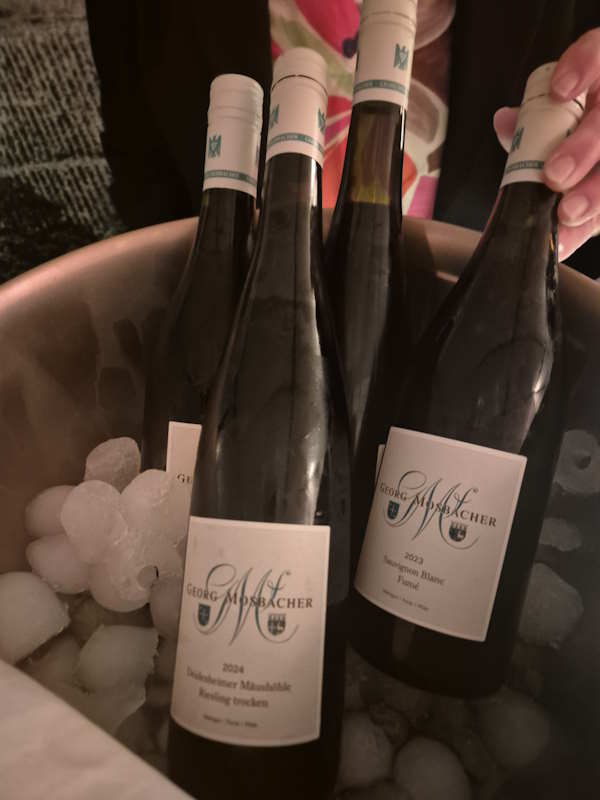 Aus der PfalzGeorg Mosbacher (2024 Deidesheimer Mäushöhle Riesling trocken VDP.Erste Lage, + 2024 Sauvignon Blanc Fumé trocken).|