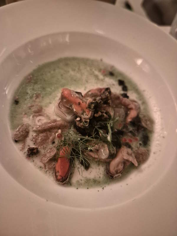 . Praline von Meeresfrüchten mit Zitronengrasschaum