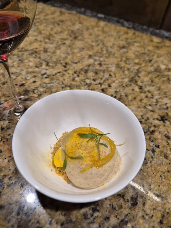 Soud’s orientalischer Eisbecher mit Safraneis, Couscous-Crumble, Fenchel Dattelschaum (ein Traum!)