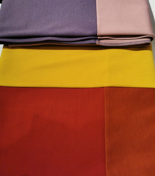 Im Show-Room war die Herbst/Winter-Kollektion ausgestellt und machte Lust auf Farbe: Knalliges Orange zusammen mit Camel oder kräftiges Rot, Grün, Türkis….