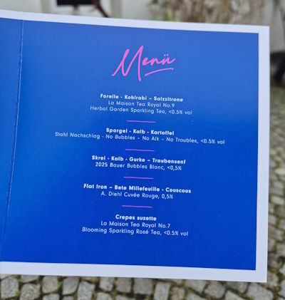 Denn, ist es nicht oft so, dass mit jedem Schluck Alkohol die Geschmacksnerven auch ein bisschen müde werden und damit in Mitleidenschaft gezogen werden? Wie schade, wo man doch in der Gastronomie oft kulinarisch so verwöhnt wird? Genau, und deshalb begeistert mich auch die alkoholfreie Menü-Begleitung so sehr, denn man kann einfach die servierten Gänge so viel besser genießen. Hier also das Menüs mit dem entsprechenden Getränk: